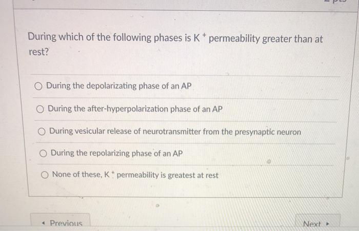 Question: During Which Of The Following Phases Is K* Permeability