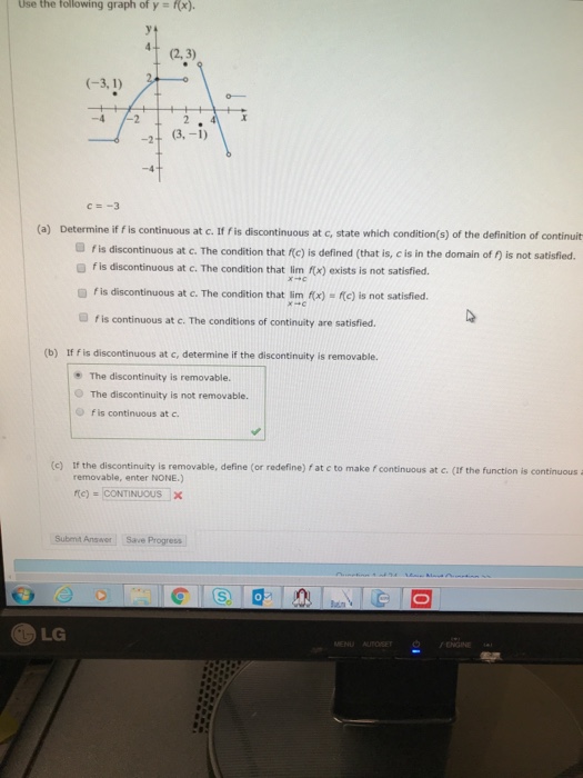 $\begingroup$ just to mention a curious example in the vicinity of this question: First week only $4. 99! We've got the study and writing resources you need for your assignments. State whether the given measurements determine zero, one, or two triangles. A = 36°, a = 3, b = 9. Discontinuities can be classified as jump, infinite, removable, endpoint, or mixed. Removable discontinuities are characterized by the fact that the limit exists. The other types of discontinuities are characterized by the fact that the limit does not exist. The function f (x) will be discontinuous at x = a in either of the following situations and it has the following types of discontinuities discusses below :